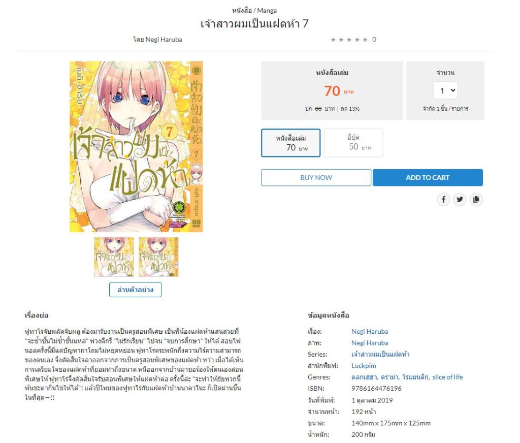 หนึ่งในมังงะเรื่องที่ค่อนข้างเป็นที่ต้องการและหายากในปีที่แล้ว คือเรื่อง เจ้าสาวผมเป็นแฝดห้า เรียกย่อๆ ว่า แฝดห้าฯ สาเหตุหลักๆ ผมเดาว่าเป็นการคาดการณ์พลาดของทางสำนักพิมพ์ ทำให้ผลิตมาน้อยกว่าความต้องการมากๆ เพราะอนิเมกระแสแรงเกิดคาด ซึ่งในช่วงนั้นรักพิมพ์ประสบปัญหานี้กับหลายหัวเรื่องมากๆ คนด่ายับทั้งในกลุ่มเฟซทั้งในทวิตเตอร์